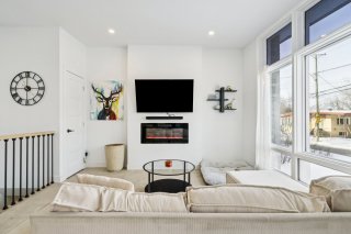 Inclus : Thermopompe murale, foyer électrique au salon